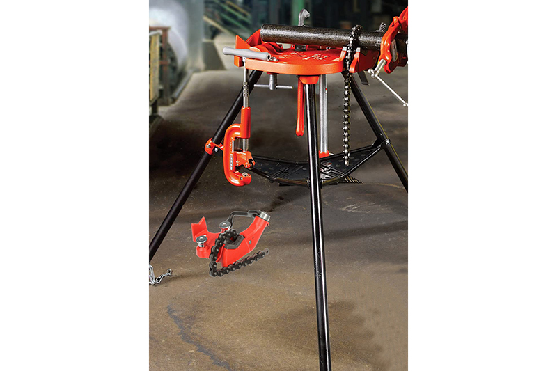 - Large size pipe clamping: This tripod chain vise can clamp pipes from 1/8 to 6 inches. Made of aluminum alloy, our upgraded base is of low weight, firm structure and easy to transport and use. The dimension of this base is 20*16 inches.